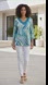 Alfred Dunner Blue Graphic 3/4 Sleeve Top