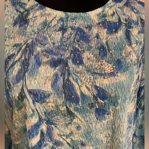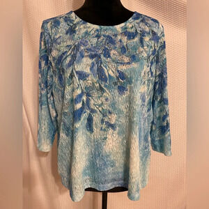 Alfred Dunner Blue Lace Print 3/4 Sleeve Blouse Size Petite XL