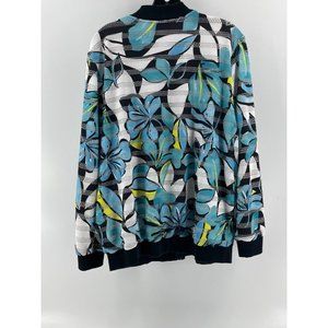 Alfred Dunner Blue Yellow Floral Print Full Zip Sweatshirt Jacket Size 14