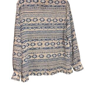 Alfred Dunner Blue/Cream Western Indie Long Sleeve Button Up Pearl Buttons