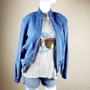 Alfred Dunner Bomber Embroidered Long Sleeves Zip Front Wool Blend Sweater SALE
