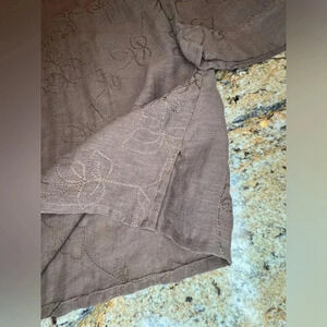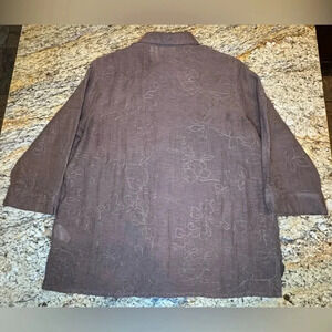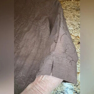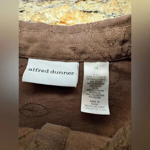 Alfred Dunner Brown Embroidered 3/4 Sleeve Button Front Shirt Women’s Size 14
