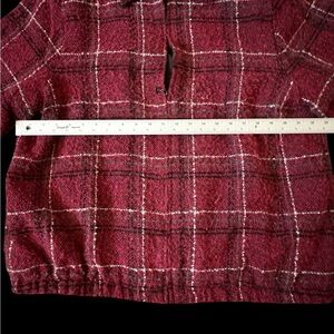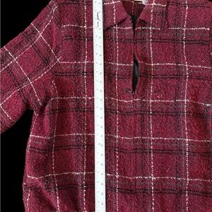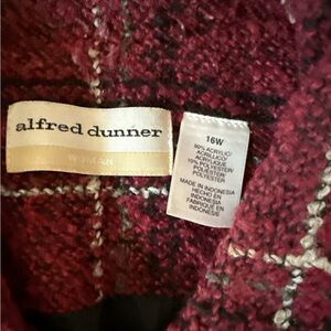 Stay cozy in this Alfred Dunner Women’s sweater jacket, size 16W. Features a rich red plaid pattern with black and white accents, a soft acrylic/polyester blend, and a partial zip front. Perfect for layering in fall and winter.