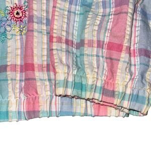 Alfred Dunner Button Front Jacket Women's Size 14 Pastel Plaid Embroidered Light