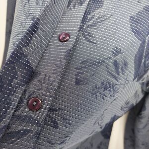 Alfred Dunner Button Shirt Womens 16 Blue Sheer Metallic Rose Witchy Whimsigoth