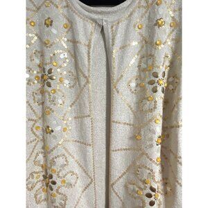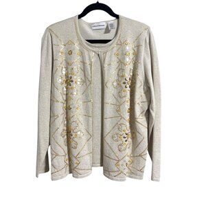 Alfred Dunner Champagne Embellished Open Front Cardigan Size L NWT