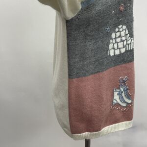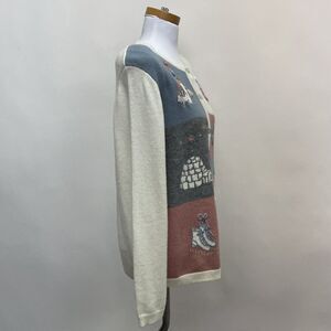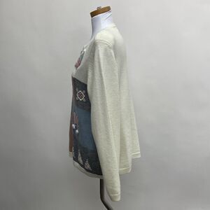 Alfred Dunner Christmas Cardigan Sweater Large X-Large Ivory Blue Pink LS