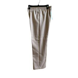 Tan slacks with elastic waist and pockets. Textured Almond proportioned short pants.