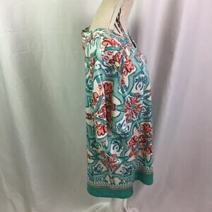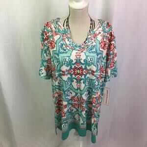 Alfred Dunner Coastal Drive Short Sleeve Blouse Multi Green Small