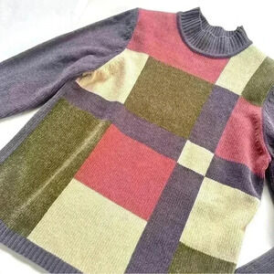 Vintage Alfred Dunner color Block High Neck Crew Neck Sweater