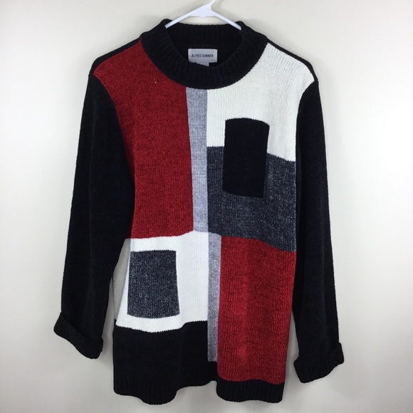 Alfred Dunner Red Black White Acrylic Sweater Mock Neck Long Sleeve Small. Condition is Pre-owned.