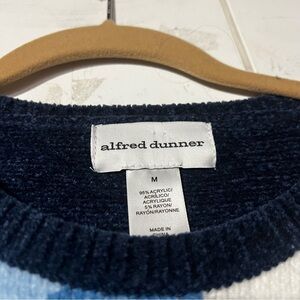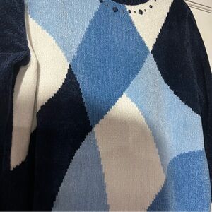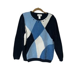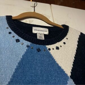 Alfred Dunner Colorblock Argyle Sweater Blue White Gemstone Neckline Sz Medium