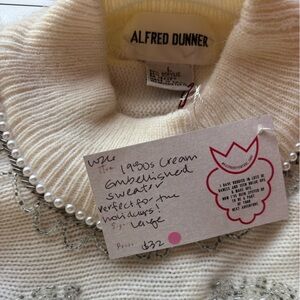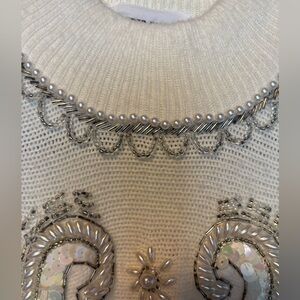 Alfred Dunner Cream Beaded Sequin Embellished Long Sleeve Vintage Sweater Size L