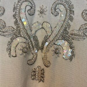 Alfred Dunner Cream Beaded Sequin Embellished Long Sleeve Vintage Sweater Size L - Very Good Vintage Condition - Silver and Clear Sequins and Beads