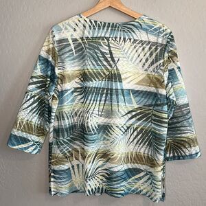 Alfred Dunner Cream Blue Green Chesapeake Bay 3/4 Sleeve Blouse Size Medium