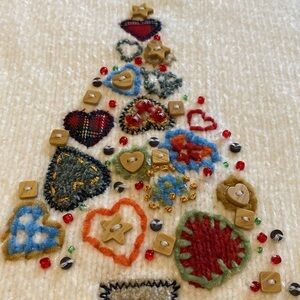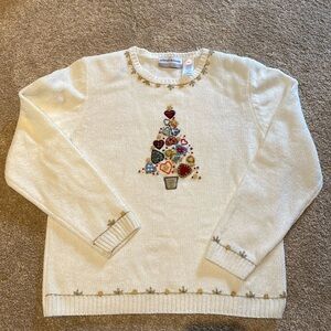Alfred Dunner Cream Chenille Christmas Tree Appliqué Embellished Sweater PXL