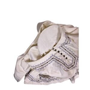Alfred Dunner sweater featuring shoulda pads. This Alfred Dunner cream embroidered floral sweater in women’s Large is a perfect cottagecore piece — soft, romantic, and beautifully detailed. Featuring delicate floral embroidery on a cozy cream knit, this tunic-length sweater offers a relaxed, feminine silhouette ideal for layering in whimsical, nature-inspired outfits. Pair it with flowy skirts, trousers, or denim for a charming cottagecore, vintage, or classic look.