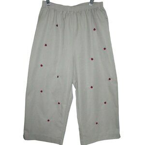 Alfred Dunner Crop Pants Womens Size 14 X 23" Beige Pull On Elastic Waist Ladybug cropped