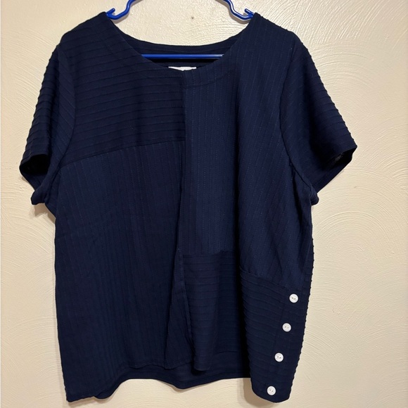 Alfred Dunner Dark Blue Blouse with Side Buttons