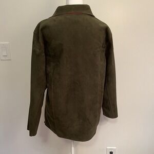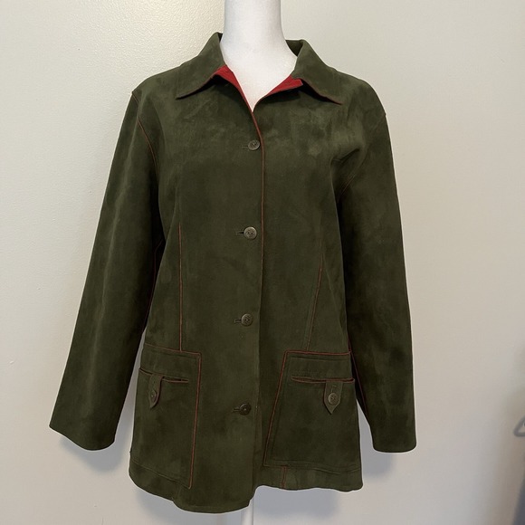 Alfred Dunner Dark Olive Green and Red Faux Suede Shacket Jacket Women's 10