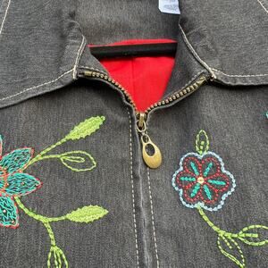 Alfred Dunner Denim Floral Embroidered Jacket - Size 16