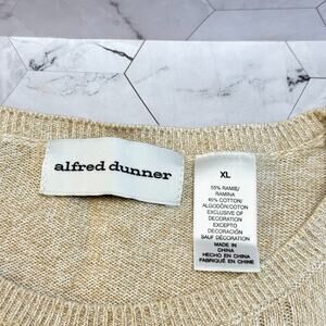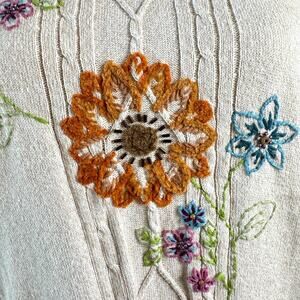 Alfred Dunner Embroidered Beaded Beige Fall Floral Cable Knit Womens XL Sweater
