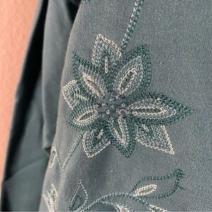 Alfred Dunner Embroidered Beaded Button Up Cardigan Size Large Teal