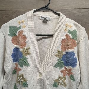 Alfred Dunner Embroidered Button Cardigan Sweater Women's Medium Petite
