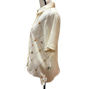 Alfred Dunner Embroidered Button-Up Top Whimsical Monkey Floral Details 10P NWT