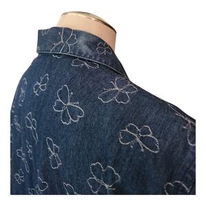 Alfred Dunner Embroidered Floral Chambray Shirt | Size 18 | 100% Cotton Button