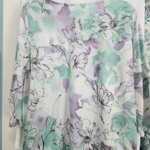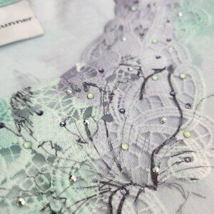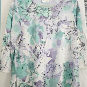 Alfred Dunner Embroidered Lace Top Light Green and Lavendar Sz L