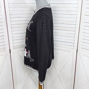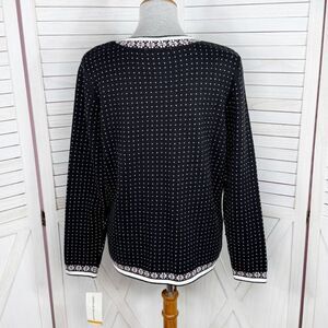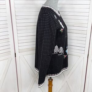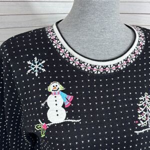 Alfred Dunner Embroidered Snowman Polka Dot Holiday Christmas Sweater Black S