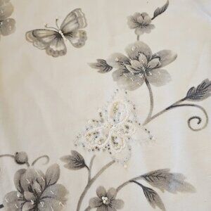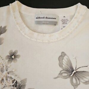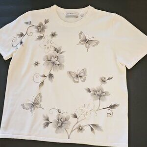 Alfred Dunner FLORAL with butterflies beaded knit Blouse short sleeves P-Large