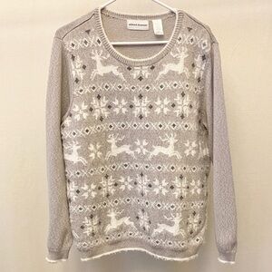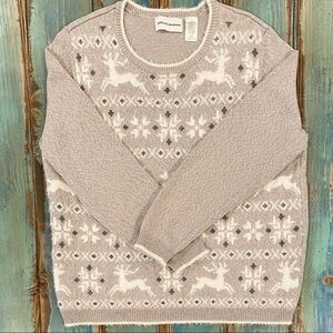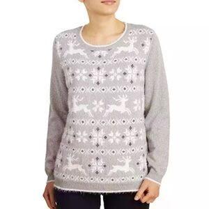 Alfred Dunner Fair Isle Reindeer Sweater Eyelash Gray Size Large Holiday Winter