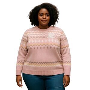 Alfred Dunner Fair Isle Sweater Womens Plus Size Pink 3X Embroidered NEW NWT $73