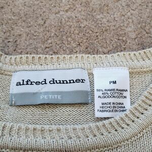 The Alfred Dunner Fall Theme Sweater is a beautifully embroidered sweater featuring pumpkins, apples, and leaves, perfect for the fall season. Made from a blend of Ramie and Cotton, this tight-knit sweater has a crew neck and long sleeves with a cap sleeve design. The sweater is in a multicolor colorblock design, making it versatile for various occasions such as casual outings, parties, or even business events. Its vintage style with nature-themed embroidery adds a unique touch to your wardrobe, suitable for regular fit in size PM for petites.