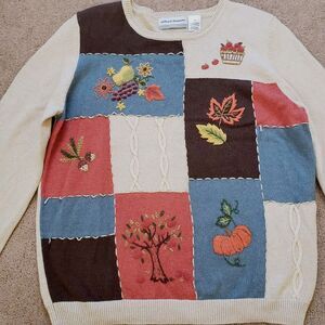 Alfred Dunner Fall Theme Sweater Embroidered Pumpkins Apples Leaves Women’s PM