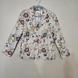 Alfred Dunner floral button up jacket with a boho touch. Size 14- fits like a Medium. Excellent pre-owned condition.
