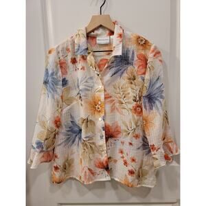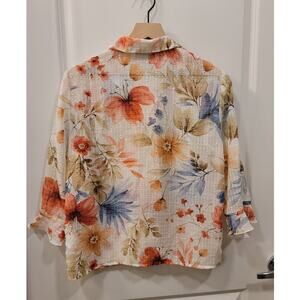 Vintage Coastal Grandma Floral Blouse in cream background with water color florals. Button front cottagecore blouse features flutter sleeves. Eclectic grandpa lightweight semi sheer blouse is perfect for summer.