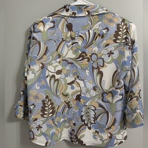 Alfred Dunner Floral Button Down Shirt - Blue, Green, and Brown