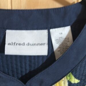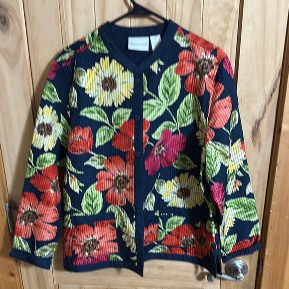 Alfred Dunner Vibrant quilted floral button-up jacket with a mix of floral colors. Perfect for adding a pop of color to any outfit.