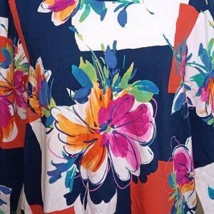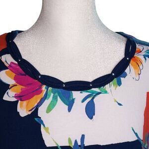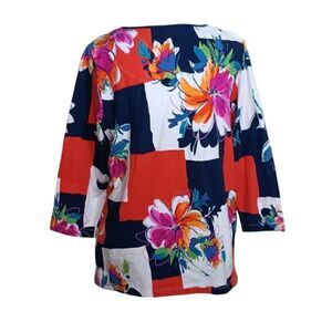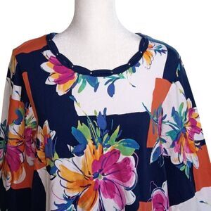 Alfred Dunner Floral Colorblock Pullover Top Sz S Red Blue Pink Orange Green