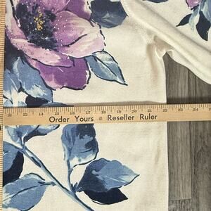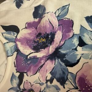 Alfred Dunner Floral Embellished Pullover Sweater Cream Purple Blue Flowers