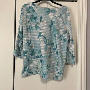 Keywords: Alfred Dunner, floral top, blouse, 3/4 sleeve, blue green, textured, womens top, casual top, floral print blouse, size L, ladies top, comfortable top, easy care, relaxed fit