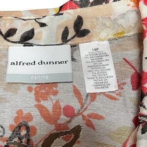 Alfred Dunner Floral Semi Sheer Blouse Button Up Top 3/4 Sleeve Size 14P