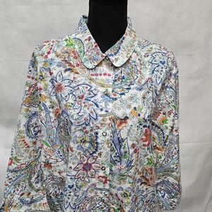 Alfred Dunner Floral Semi Sheer Cut Out Snap Up Shirt Size 18
