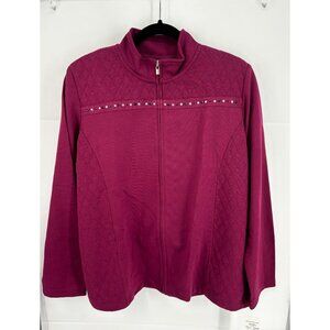 Alfred Dunner Full Zip Jacket Sz 14 Raspberry Color Embellished New