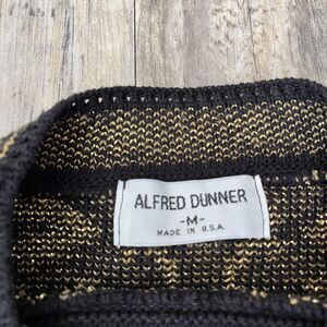 Alfred Dunner Gold and Black Vintage Knit Sweater Women's Medium Oversized — Add a touch of vintage elegance with this stunning Alfred Dunner sweater! Featuring a bold gold and black knit design, this women’s medium piece offers a comfortable oversized fit that’s both cozy and chic. Perfect for dressing up or adding a statement piece to your everyday vintage look. Has small hold on hem shoulder, could easily be closed