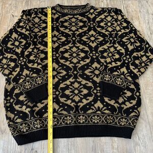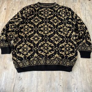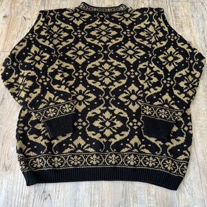 Alfred Dunner Gold and Black Vintage Knit Sweater Women's Medium Oversized