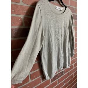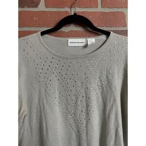 Alfred Dunner | Gray Long Sleeve Studded Glittered Sweater Top